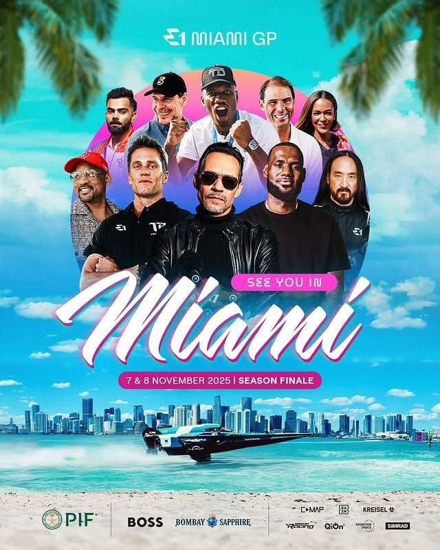 The UIM E1 World Championship brings celebrity-backed, all-electric powerboat racing to Miami this November, capping the 2025 season with a two-day waterfront show.